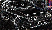 Зато сходу можно себе представить этого дурачка. У него прекрасная машина - "Фольксваген Гольф" 1971 года выпуска. Дырки в крыльях заботливо залеплены пластилином или жвачкой и закрашены гуашью. Подкрылки замазаны голубой масляной краской (не пожалел, разорился) и на них черной масляной краской выведено SPARKO (как правильно пишется это название - он не знает). В конце крыши саморезами прикручен спойлер, сделанный из детского конструктора. На заднем сидении ремнями прицеплены два огнетушителя, корпусы которых замазаны черной краской и на них здоровенными желтыми буквами написано "ЗАКЕСЬ ОЗОТА".