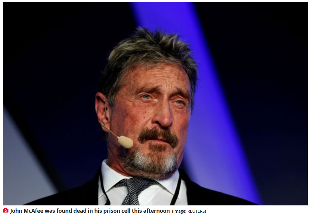 75-летний основатель фирмы McAfee Associates, занимающейся разработкой антивирусного программного обеспечения, был обнаружен мертвым в своей камере в тюрьме недалеко от Барселоны.