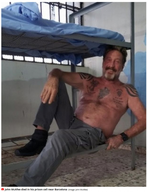 Темная какая-то история. Об этом пишут несколько испанских изданий, но вот здесь в Mirror наиболее подробная статья - "John McAfee dead: UK-born computer genius found dead in prison cell in Spain".