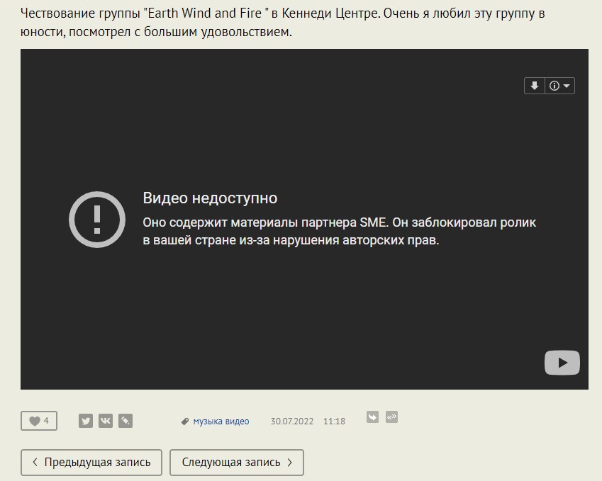 Я это видео смотрел раньше с большим удовольствием. Стал искать у себя в просмотрах Youtube. Не нашел ни там, ни по поиску. Магия. При том, что другие трибьюты Кеннеди центра доступны....