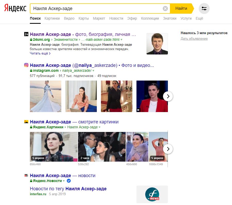 Зайдя в Инстаграмм этой самой Наиля Аскер-заде (первая ссылка в выдаче гугла), я был просто поражен двумя фактами: НИ ОДНОЙ фотографии отличной от бюстового портрета самой Наиля Аскер-заде (редкие вкрапления со съемок можно не считать) и на большинстве фотографий ОДНО и ТОЖЕ выражение лица. Второе, кстати, было особенно страшно - будто взяли и прифотошопили голову на разные фоны и костюмы.