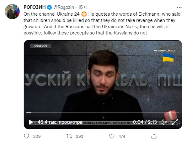 "Прошу провести проверку информации, опубликованной гражданином Российской Федерации РОГОЗИНЫМ Дмитрием Олеговичем в социальной сети "Твиттер" 15-го марта 2022-го года.