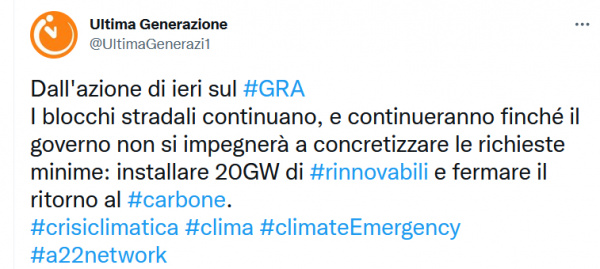 Экодвижение «Последнее поколение» запустило серию протестов против добычи газа и повторного открытия в Италии выведенных из эксплуатации угольных электростанций. Его участники выбирают утренние часы-пик для своих акций: они садятся на проезжую часть, закрывая проезд автомобилям, сообщает портал Roma Today.
