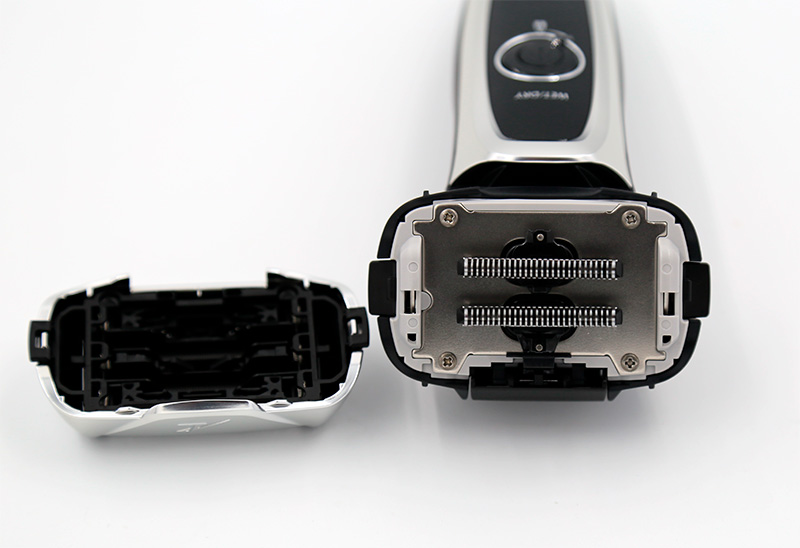На головке - пять сетчатых бритв. Сама головка "плавающая" - может поворачиваться на небольшие углы по всем направлениям.