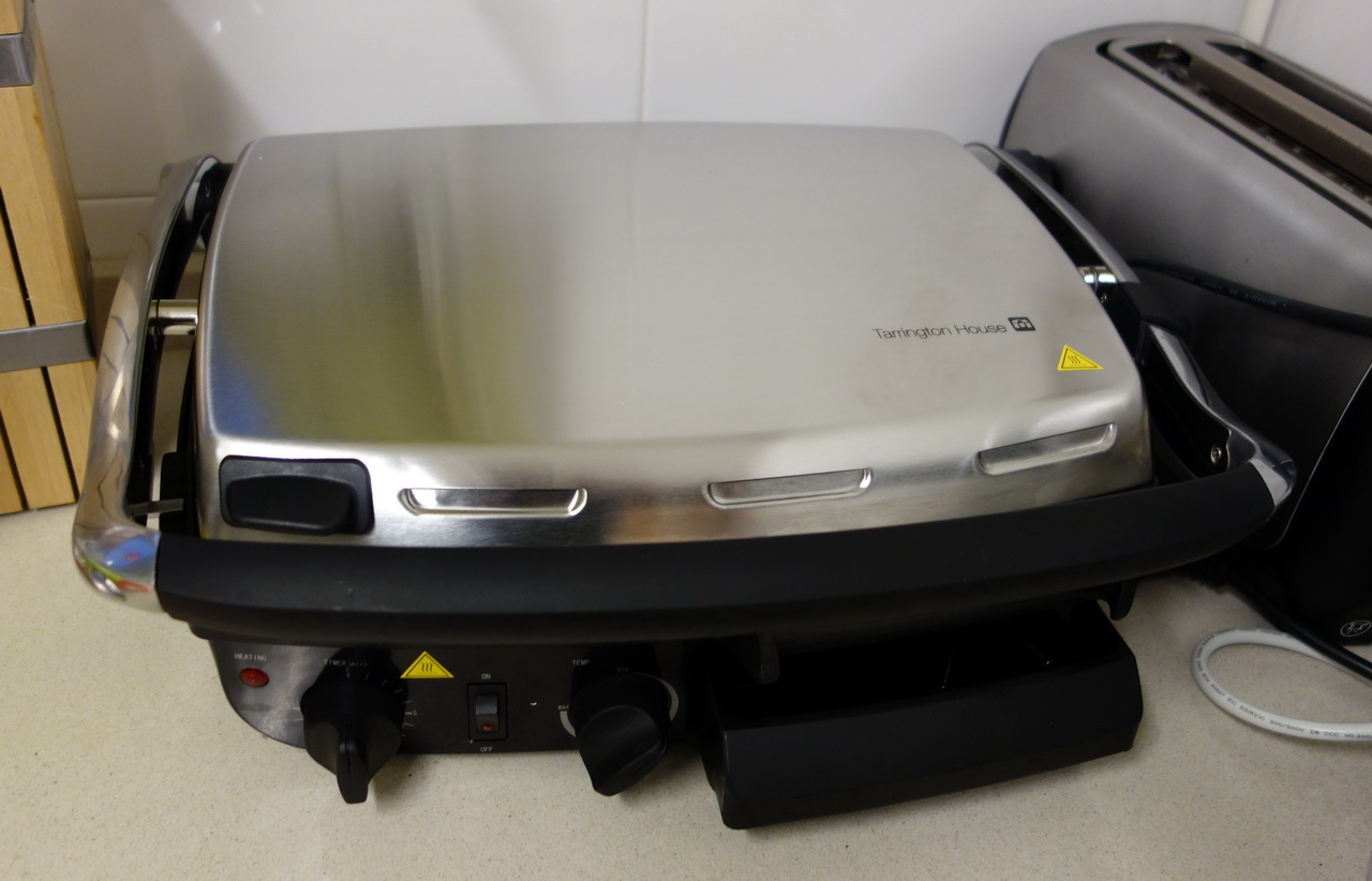 Двусторонний электрогриль - крайне полезная штука. В Москве у меня Bork G801 (который в Штатах называется Breville). Устройство удобное, использую постоянно, но стоит этот гриль - каких-то нереальных денег, 625 евро (25 тыров). И ничего похожего дешевле я не нашел - только бутербродницы за 3-4 тыра, но это жалкое подобие нормального электрогриля.