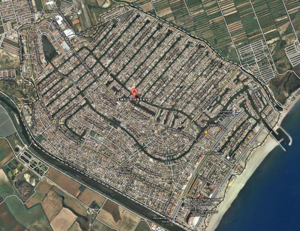 Я уже писал об очень прикольном городке Эмпуриабрава: он находится почти на границе с Францией и интересен тем, что весь город пересекают водные каналы, которые хорошо видны на карте - вот этот городок.