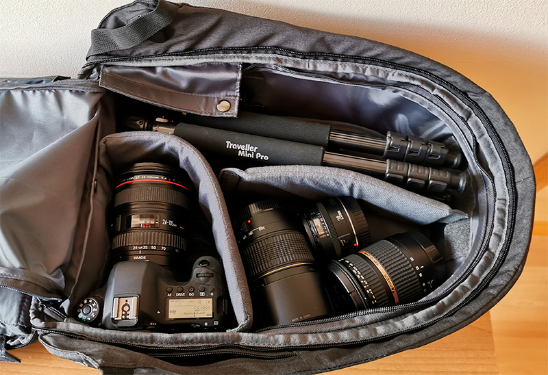 И посмотрите, что туда удается поместить для небольшой поездки - например, пофотографировать.