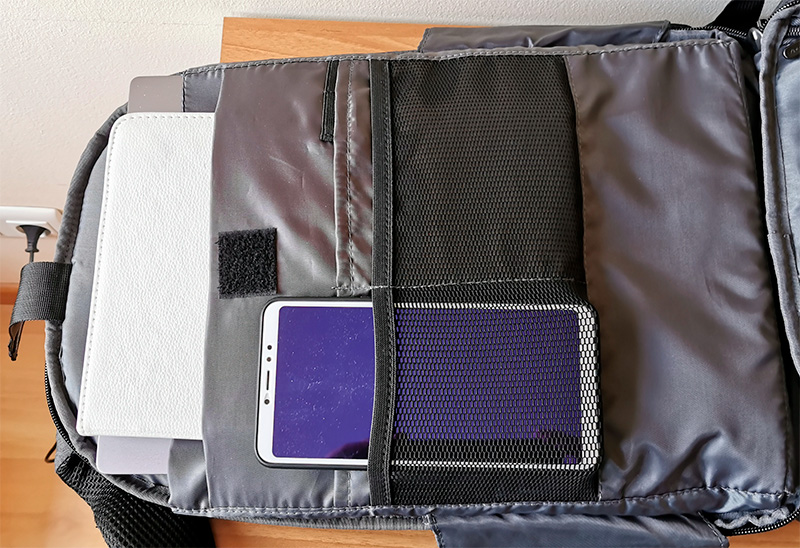 На внутренней части спинки - еще несколько карманов. В самый большой карман легко поместился мой ноутбук Xiaomi Mi Notebook Pro, у которого дисплей 15,6".