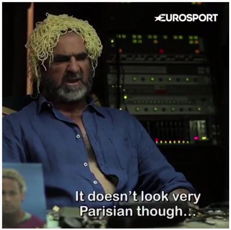 Выдающийся футболист и не менее выдающийся скандалист Эри́к Кантона́ у себя в Инстаграме забавно троллит Неймара (англ.).
