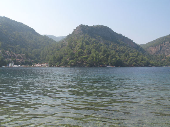 Вот эту фотографию сделал вчера вечером, перед закатом. Залив, кстати, очень хорошо расположен: солнце встает из-за гор и садится в море. Поэтому на пляже можно сидеть до 18 часов, что для октября - более чем душевно.