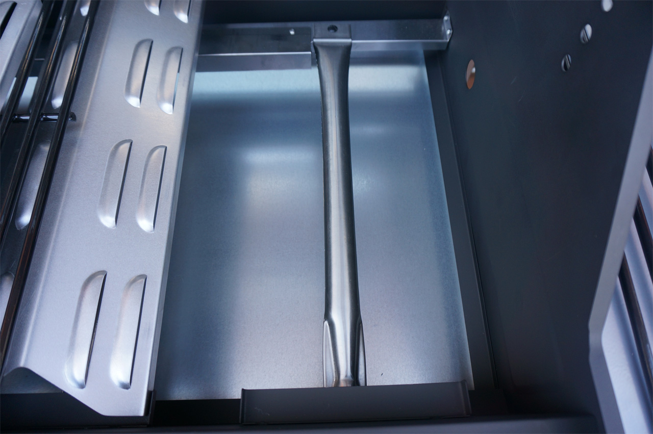 Насчет "не надо мыть" кого-то ждет сюрприз. Жир скапливается повсюду, и если на поддон можно просто высыпать специальный песок и время от времени его менять, то вот эти направляющие, на которых лежат пламегасители, мыть удовольствие то еще. Не мыть нельзя, иначе скопишийся жир в один прекрасный момент полыхнет. Штука неприятная и довольно опасная. Да и просто разводить свинство в барбекюшнице не хочется.