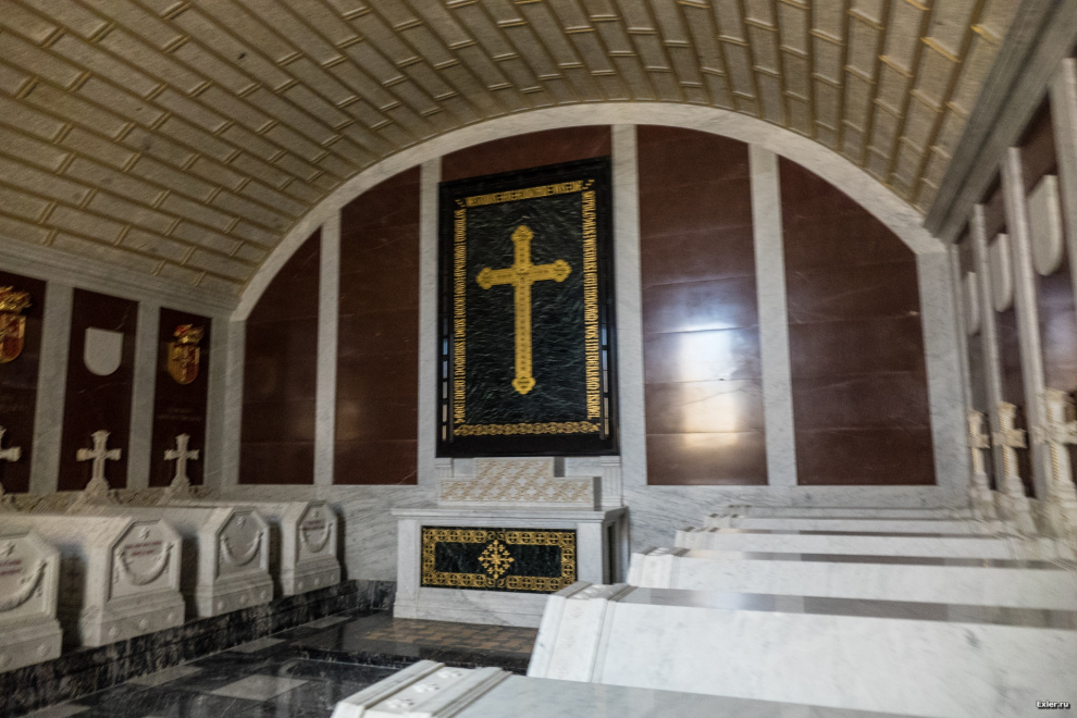 Вот это пантеон королей. Тут пустуют три гробницы, но в них захоронят троих уже умерших членов королевской семьи. Где будут хоронить нынешних короля и королеву Испании - пока неизвестно.