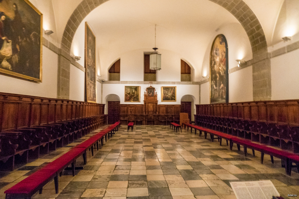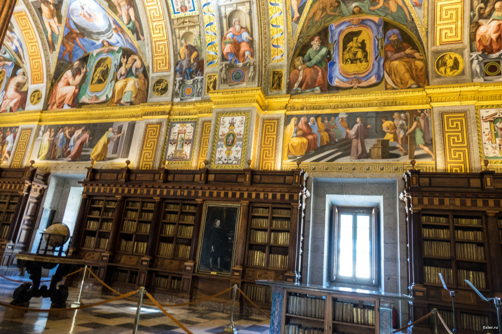 Через площадь можно пройти и попасть в знаменитую Библиотеку Эскориала. Она уступает только Ватиканской - в ней собраны уникальнейшие издания.