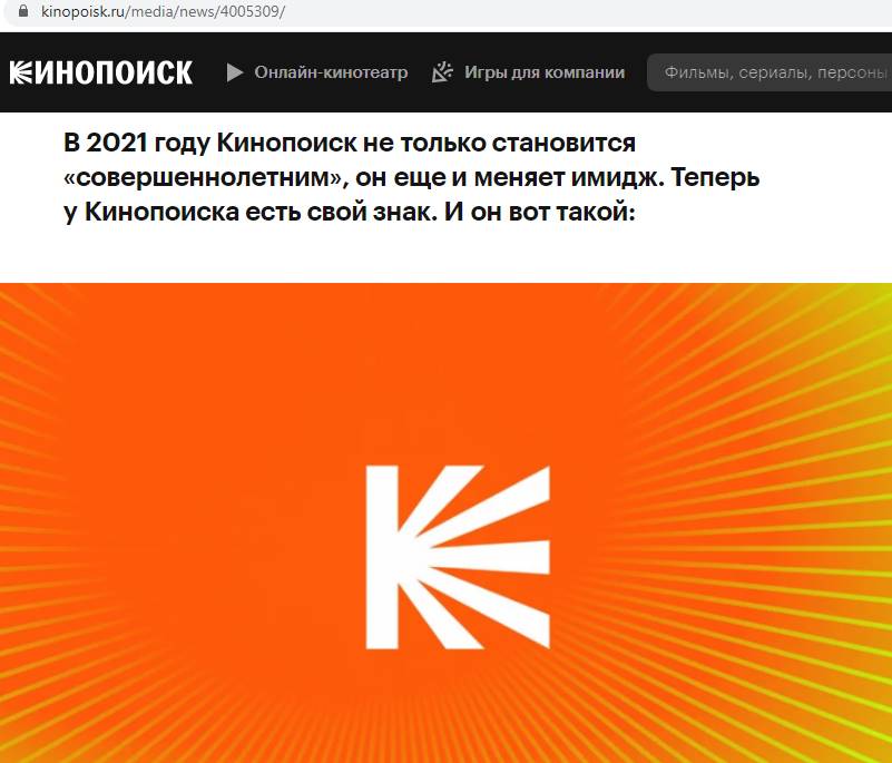 У эмблемы Кинопоиска - стилизованная буква "К" и лучи кинопроектора.