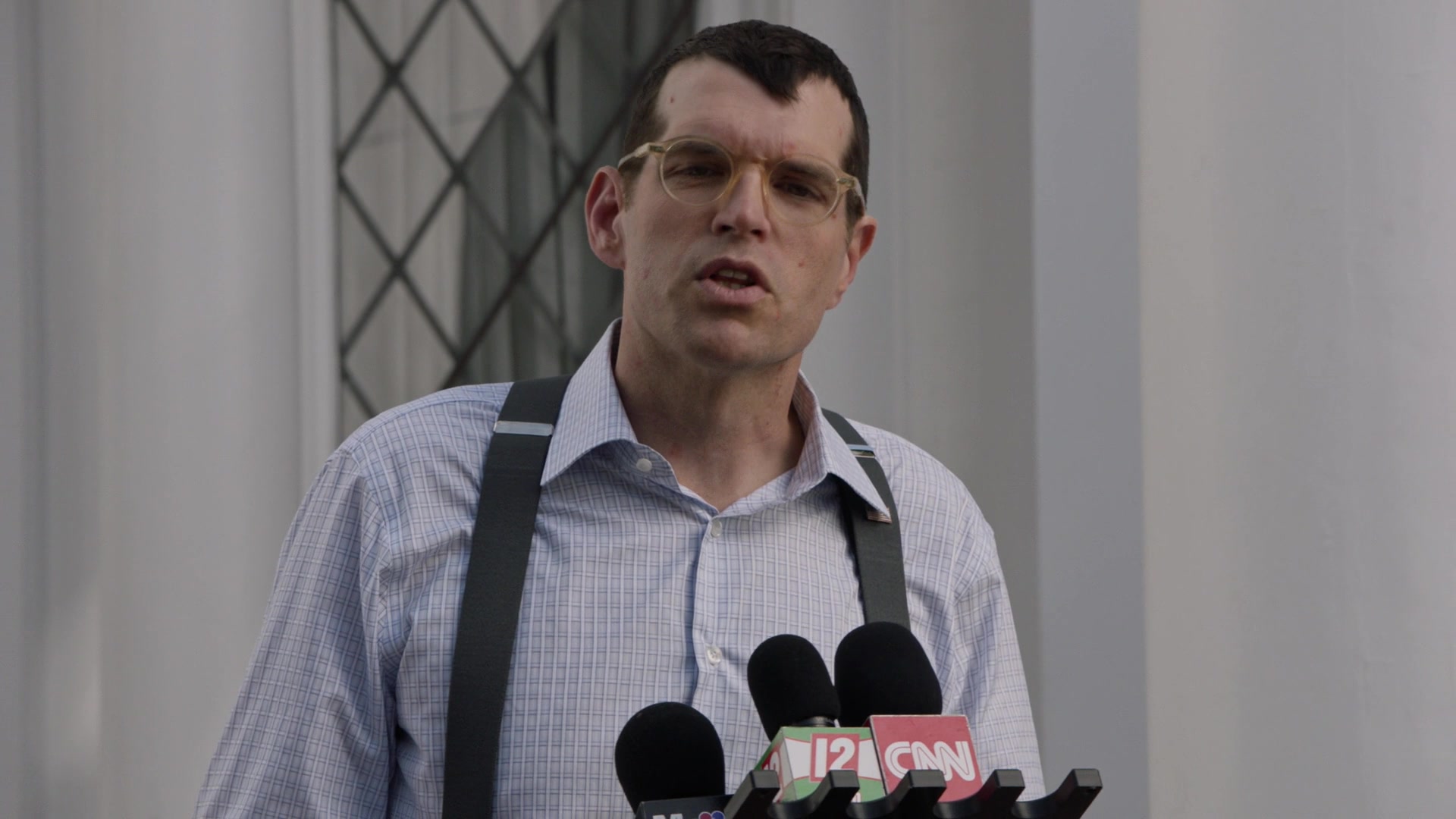 мне показалось, что он уже нажал кнопку, но допольнительно просит напарника известить еще кого-то, кто может находиться на маршруте рядом.