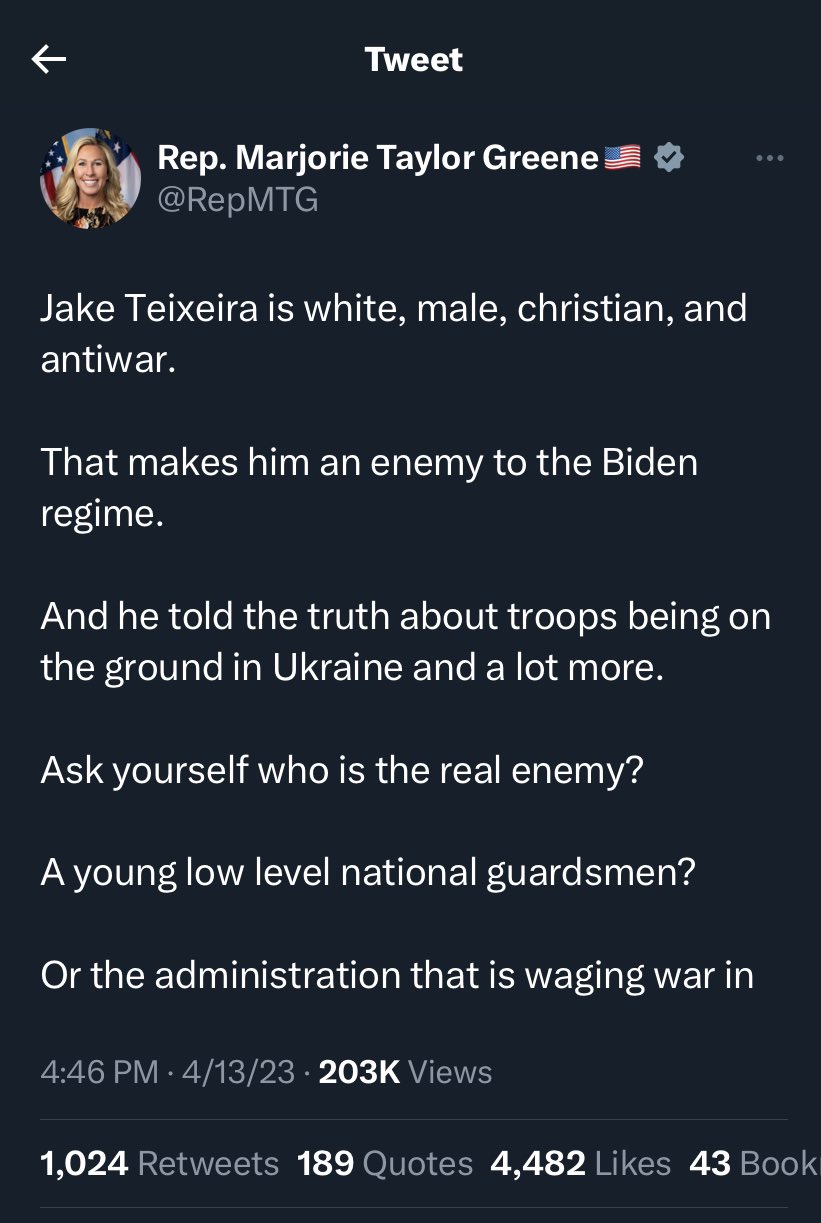 Как мило 😄) Среагировали на ключевые слова, остальное додумали, обиделись и кинулись защищать честь Трампа, используя банальный whataboutism. Пожалуйста, не обижайтесь, я не собиралась оскорбить Трампупсика. Я хотела показать то, что показала: цитату Марджори Тейлор Грин, известной трампистки, члена Committee on Homeland Security в Конгрессе.