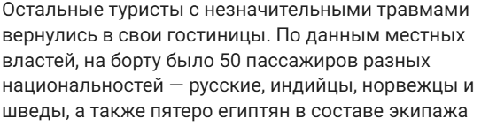 Вчера сообщали о трагедии с туристическим батискафом, затонувшим у берегов Египта. На борту батискафа было 45 российских туристов, по меньшей мере 6 человек из них погибли. В качестве причины аварии называли столкновение батискафа с рифом.
