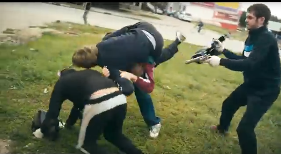 Все это видел другой мужчина, находящийся недалеко на улице. В тот момент, когда грабители напали на коммерсанта, этот мужчина вытащил ключи из машины нападающих. (Молодец, не растерялся.)