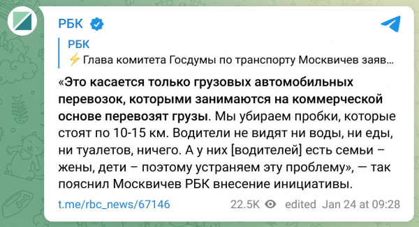 Уже сказал, что его неправильно поняли и это касается только грузоперевозок.