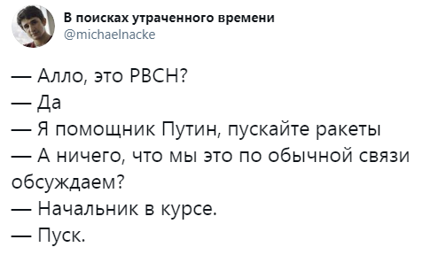 В общем, неважно, кто там над чем ржёт, поскольку ситуация очень странная. Санкции вводят вполне реальные, очень убыточные для России, при том, что Навальный теперь пранкер с большой группой инфоподдержки, абсолютно уверенной, что Лёша -непотопляемый, а значит и они тоже.