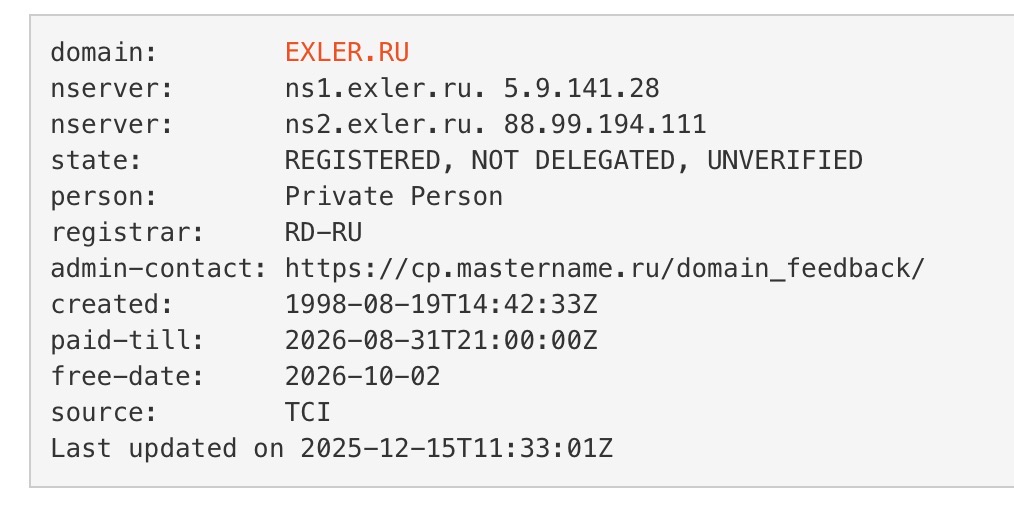 На основании вышесказанного мы вынуждены немедленно отключить делегирование для домена exler.ru.
