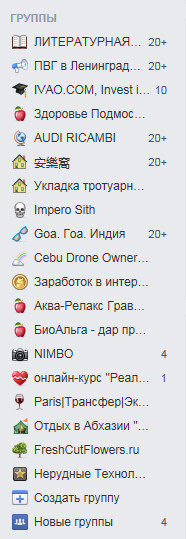 Захожу в аккаунт - а там уже вовсю цветет малина: пять самодобавленных кенжегулей, тридцать одна группа, двадцать отметок "Нравится". Тридцать одна группа, Вася!