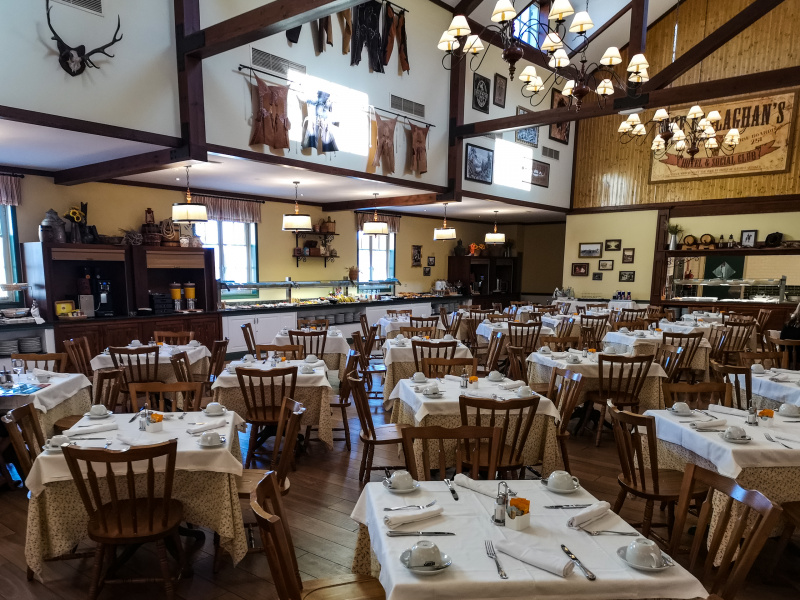 Ресторан, в котором подавали завтрак. Ресторан также украшен в стиле Дикого Запада.