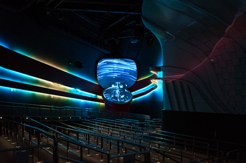 Зал, через который можно зайти по очереди в два аттракциона: Flying Dreams и Racing Legends