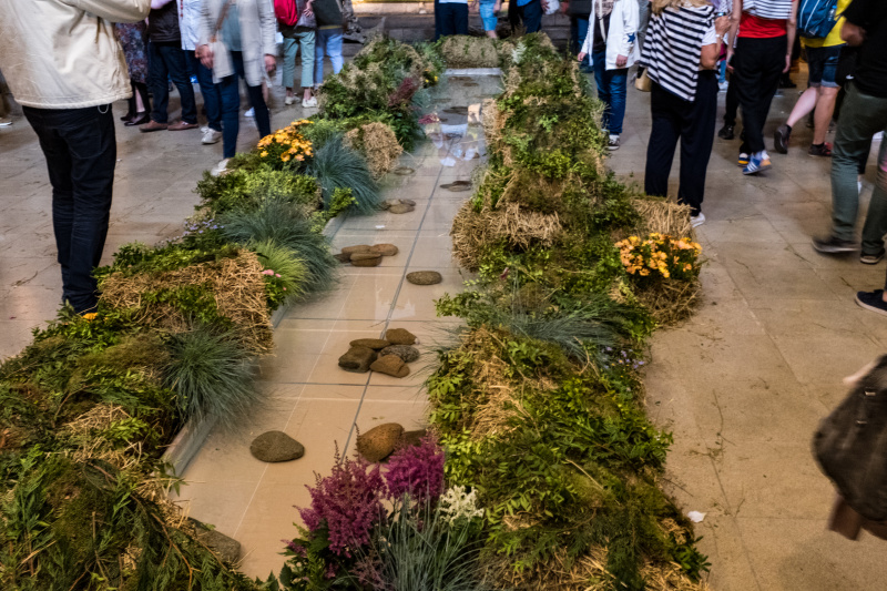 Инсталляция каких-то японцев: цветочки, пакетики и баночки с цветной водичкой. Я так понимаю, что это изображает мир во всем мире и многообразие бланманже в природе.