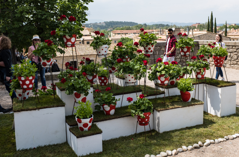 В нашем городке фестиваль цветов проходит довольно скромненько, а вот в Жироне инсталляций заметно больше и они заметно богаче. Впрочем, там этот фестиваль идет несколько дней и лучше приезжать в последний день, когда все выставлено во всей красе, но мне надо было улетать в Москву, поэтому мы там побывали только в первый день, когда далеко не все было готово. Но и тогда было на что посмотреть. Вот небольшой репортажик.