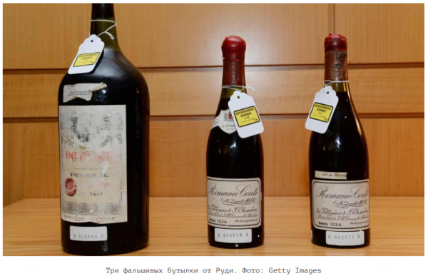 И вот тут возникают два вопроса. Первый - откуда у него на все это такие деньги? И второй вопрос, самый главный: если у человека есть десятки миллионов, то на черта ему заниматься таким дурдомом, как создание поддельных винтажей с хорошей перспективой угодить за это в тюрьму? Ладно бы он в реальные бутылки какой-нибудь шмурдяк наливал и запечатывал их. Так он, как там написано, сам рисовал никогда не существующие винтажи. А уж в этом случае обнаружить явное мошенничество - проще простого.