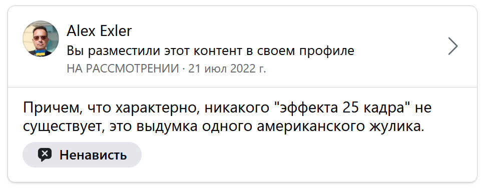 Теперь Фейсбук меня забанил за вот эту фразу. То есть "выдумка одного американского жулика" - это "проявление ненависти". Гениально совершенно!