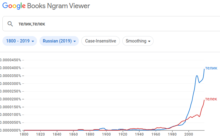 Я совершенно не отрицаю формы "телик" и признаю её (относительно недавнее) доминирование. Я только говорю, что написание "телек" тоже широко распространено в узусе и фиксируется в словарях. Я помню его даже в советской периодике 70-х (журнал "Крокодил"). Меня и самого это тогда несколько покоробило.