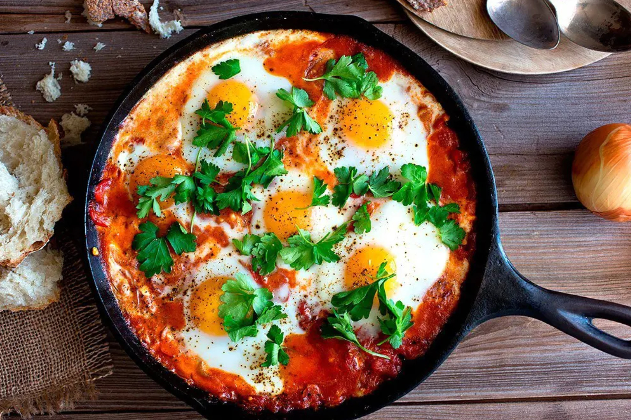 P.S. Фото отсюда (там рецепт шакшуки). Я свою яичницу почему-то не сфотографировал, пока она была в товарном виде. А потом было уже поздно.