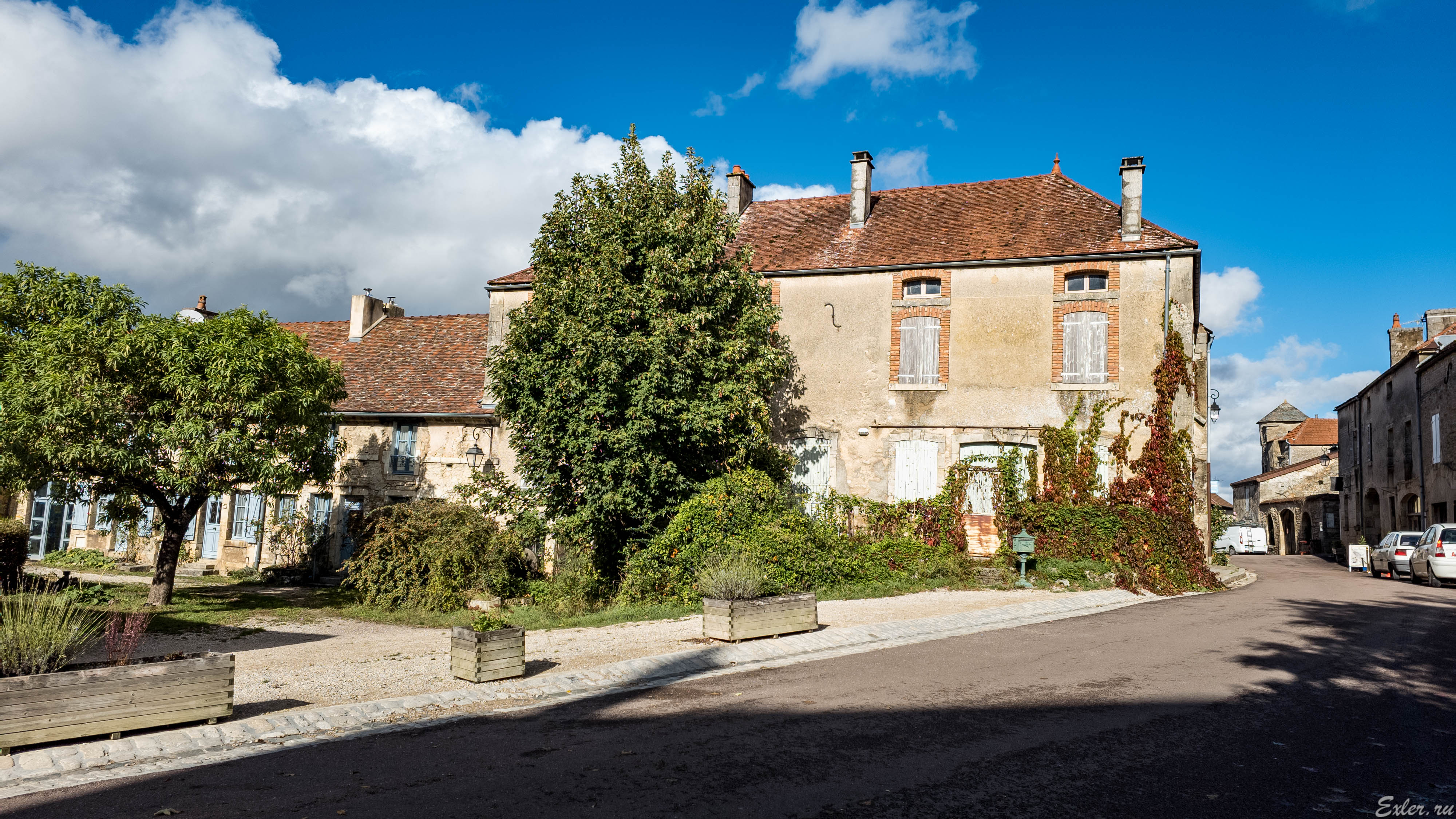 Ниже в центре - тот самый дом, в котором снимался фильм "Шоколад" с Джонни Деппом и Джульет Бинош. В прошлом году он был выставлен на продажу, и его в результате купили какие-то голландцы. Кстати, немало домов в городке принадлежит швейцарцам.