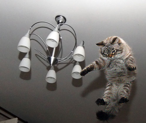 У кота перманентная невесомость, пока не упадет. Но зверушку жалко - его хоть вкусно покормили потом?