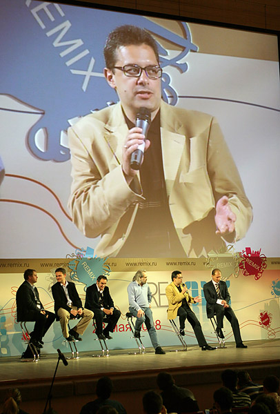 Вот здесь можно посмотреть фотографии с Remix'2008. Я там участвовал в так называемом "круглом столе", хотя на самом деле нас взгромоздили на сцене на барных стульях, сидеть на которых полтора часа было более чем неудобно. Поэтому и круглый стол получился несколько "съёрзанный".
