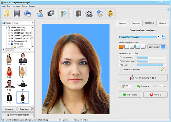 Если фотография имеет относительно однородный фон, то "Фото на документы Профи" может заменить его автоматически на любой нужный цвет. А если вдруг алгоритм автозамены не поможет, то можно легко перейти в редактор ручной замены фона.