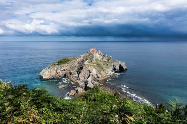 Фото, в общем-то, дурацкое, хотя обычно там публикуются довольно профессиональные фотографии, но хохма в том, что я знаю это место, я там был! Это в Стране Басков, место совершенно уникальное - называется Gaztelugatxe. Местные туда нередко приезжают вечером и ночуют, чтобы встретить рассвет и полюбоваться открывающейся картиной. А она там открывается вот такая (я снимал днем, не на рассвете).