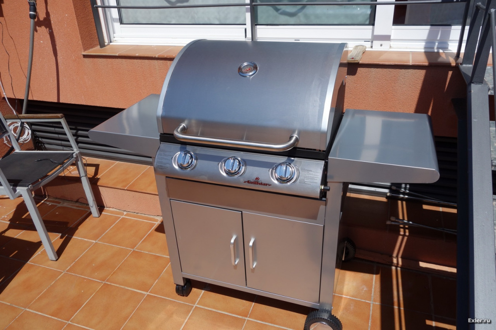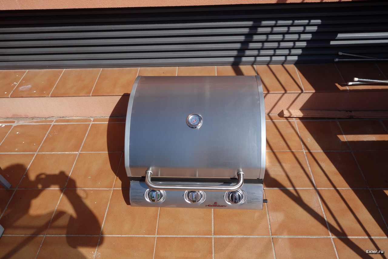 Поехал в Bauhaus, посмотрел разные модели. Газовый гриль от Weber вместе со столиком-шкафчиком стоит что-то слишком дорого, на мой взгляд: порядка 450€. Ну и я в результате подобрал гриль менее известной фирмы GrillStar (немецкая, как я понял), но он при этом стоил 245€.