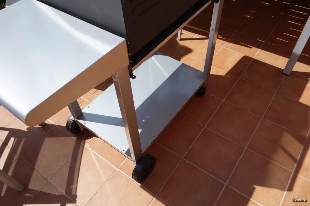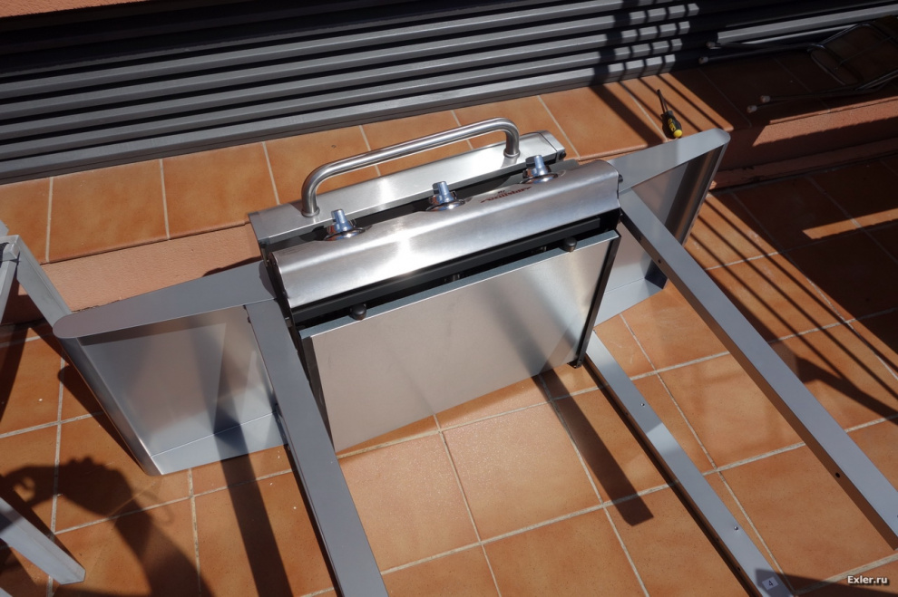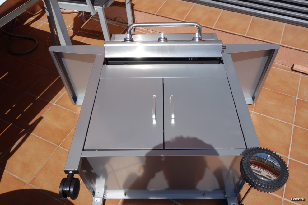 Не понимаю газовых девайсов, у меня внешне очень похожий, но на углях – LAPPIGRIL-ST. Там тоже крышка, столики, всякие решетки. Только вместо шкафчика – шикарная топка с дверцей а-ля камин. Мою только крышку ему, ну и все шампуры и решетки, ясное дело.
