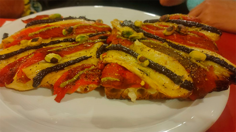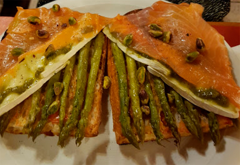 Вот, например, один из лучших баров в нашем городе - Bodega Azor, - в котором предлагают большой выбор очень вкусных бутербродов - мы туда любим ходить (у них еще и винная карта - очень продвинутая). И там делают, например, вот такие бутерброды (обычно горячие).