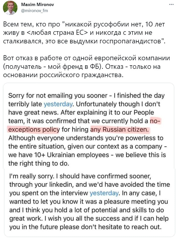 Обратите внимание: гражданство не является защищенной характеристикой. Так же как, к примеру, образование или наличие определенных умений.