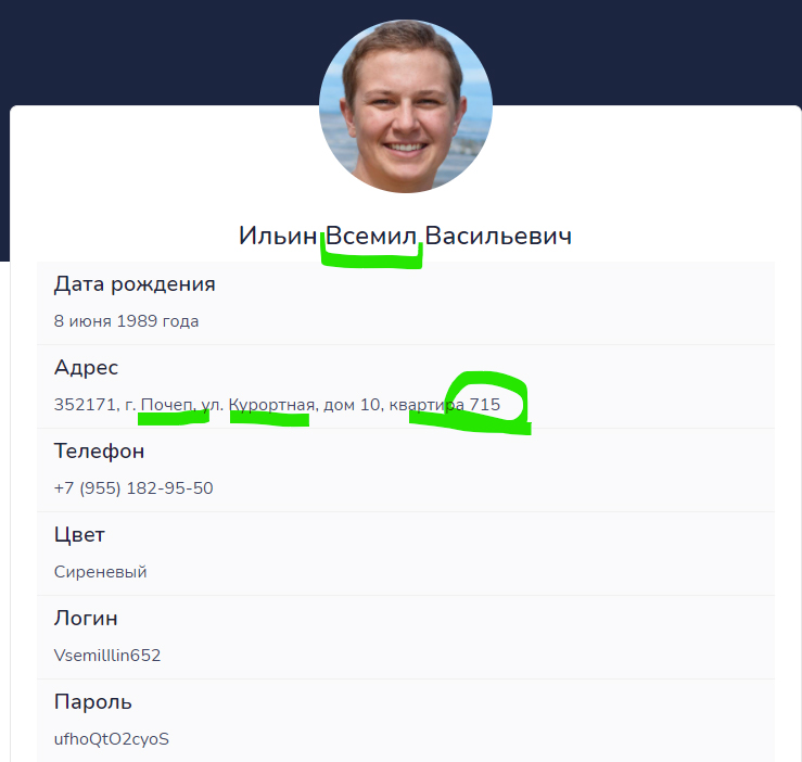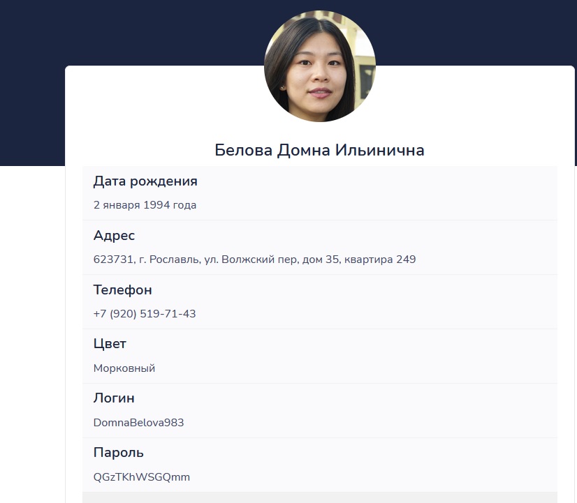 Этот генератор создает совершенно случайную личность, шанс повторения которой практически равен нулю. Это достигается путём поэтапного составления всех данных пользователя. Благодаря огромным размерам нашей базы имен, фамилий, городов, улиц, индексов, вы практически всегда получите уникальную случайную личность. А реальные фотографии нереальных людей, сгенерированные при помощи 2 нейронных сетей, придадут вашему персонажу еще больше индивидуальности и уникальности!