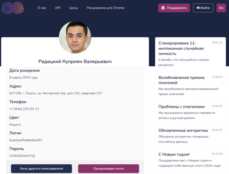 Именно для облегчения этой задачи и был придуман сервис "Генератор случайных личностей".