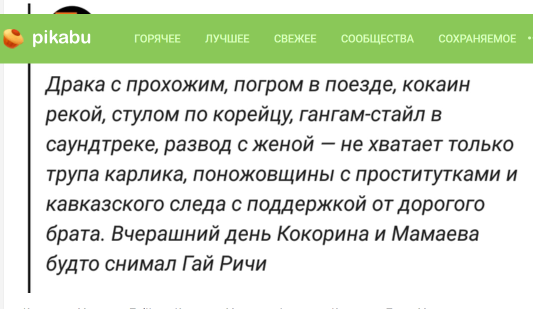 Кокорину и Мамеву надо привлечь Ричи и экранизировать свою историю, хотя бы деньги на адвокатов и прочие издержки отобьют