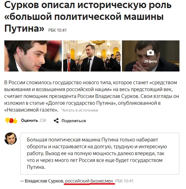 СМИ уверяют, что Сурков -российский БИЗНЕСМЕН!!!