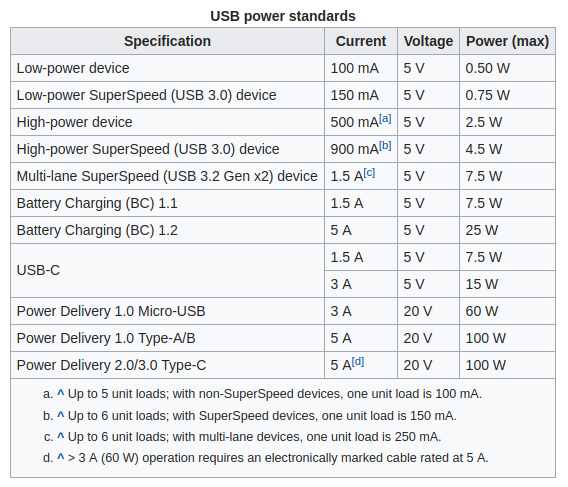 Какого из? Их штук семь более-менее актуальных. https://en.wikipedia.org/wiki/USB_hardware#Power