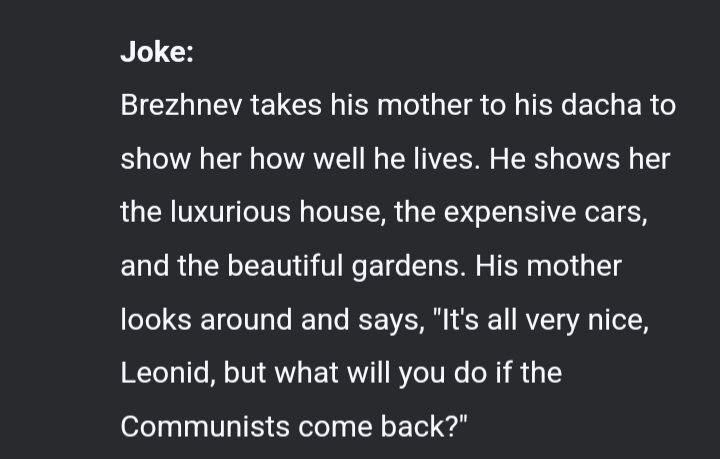 Брежнев ничего не присвоил себе. Его семья не унаследовала дом на рублевке, не владеет акциями Газпрома, его дети не рулят Роснефтью. Они занимались малым бизнесом на равных со всеми условиях. По крайней мере до 2010го.