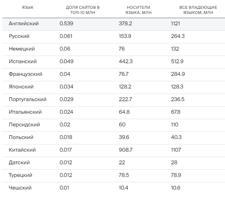 Это также логически вытекает из цифр на графике, которые вызвали удивление многих здесь написавших. Потому что, например, число людей, для которых английский язык является основным (dominant), очевидно больше, чем 379 миллонов